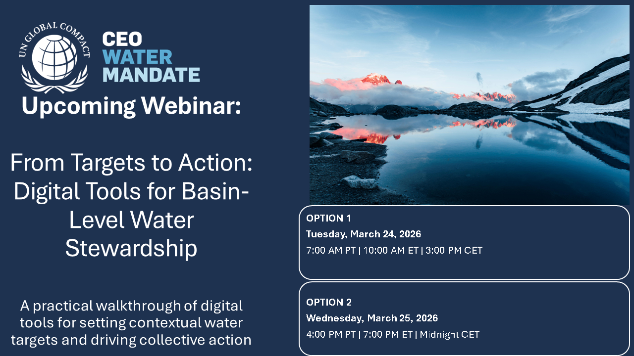 Looks like there aren’t any events listed here – be sure to check back soon for the latest webinars and programing from the CEO Water Mandate!